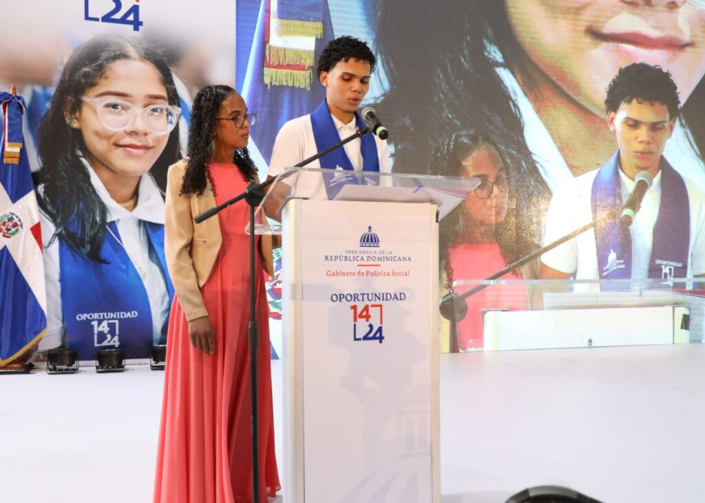 SANTO DOMINGO.- Continuando con el compromiso de impulsar la capacitación de la juventud en situación de vulnerabilidad, el presidente Luis Abinader encabezó este viernes la novena graduación ordinaria del programa Oportunidad 14/24, correspondiente a las regiones Valdesia, Metropolitana y Este del país.