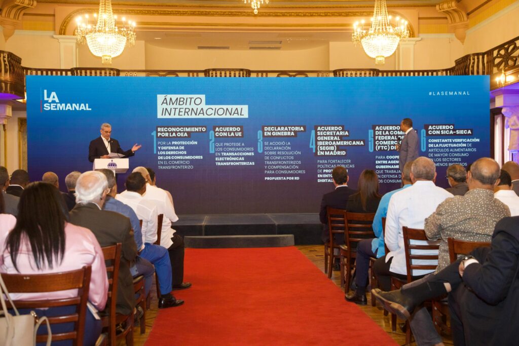 Los avances en materia de defensa del consumidor se sienten a nivel internacional, recibiendo el conocimiento por la OEA por la protección y defensa de los derechos de los consumidores en el comercio transfronterizo; se logró un acuerdo con la Unión Europea para proteger a los consumidores en transacciones electrónicas transfronterizas; y en la Declaratoria de Ginebra se acogió la declaración sobre resolución de conflictos transfronterizos y compensación para consumidores, que fue propuesta por la República Dominicana.