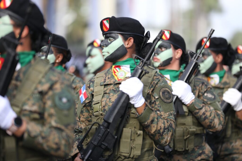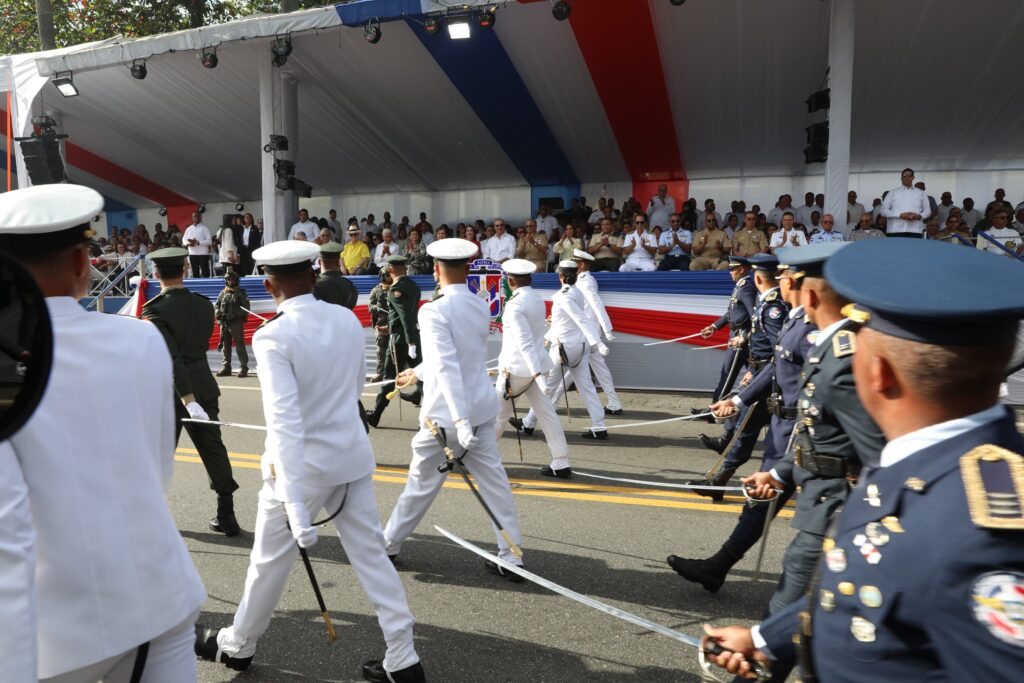En la parada, batallones del Ejército, la Armada y la Fuerza Aérea de República Dominicana, junto con los distintos cuerpos especializados de seguridad y unidades de la Policía Nacional, mostraron sus equipamientos, muchos de los cuales fueron adquiridos en la actual gestión del mandatario, y destrezas operacionales para defender la soberanía del suelo patrio y la seguridad ciudadana.