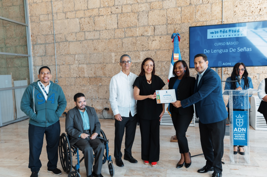 Santo Domingo, DN – Como parte del apoyo al incremento de la inclusión en la sociedad, la Alcaldía del Distrito Nacional certificó a colaboradores que finalizaron un curso de siete semanas para el manejo básico de la lengua de señas, impartido por el Departamento de Capacitación.
