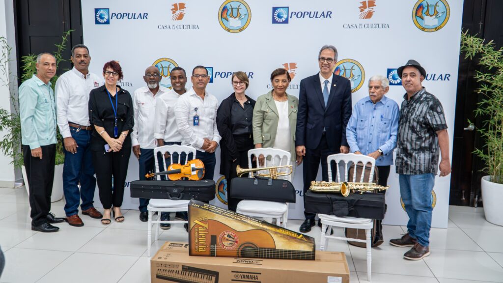 LA VEGA, R.D.. – El Banco Popular Dominicano realizó una donación de 130 instrumentos musicales para beneficiar a jóvenes estudiantes de la Casa de la Cultura, la Sociedad La Progresista, la Academia de Música y la Escuela de Bellas Artes de la provincia de La Vega, como parte de su compromiso institucional con el fomento de la educación, el arte, la cultura y el desarrollo humano en el país.