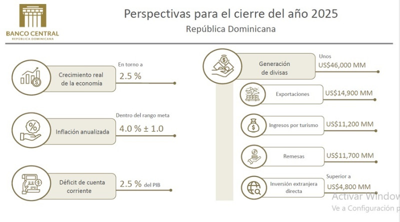 Respecto a las perspectivas, Valdez Albizu proyectó que la economía dominicana podría crecer 2.5 % en 2025, en línea con el promedio regional, y recuperar un ritmo entre 4 % y 5 % en 2026. “La política monetaria flexible y el incremento del gasto de capital a 2.7 % del PIB impulsarán la actividad económica”, afirmó.