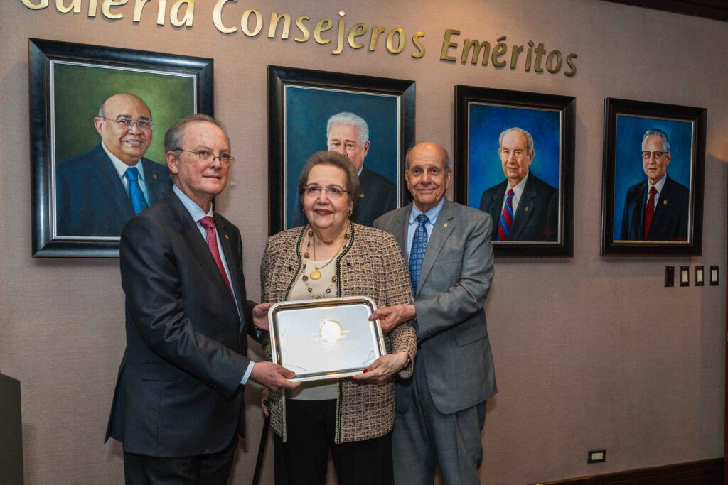 El reconocimiento tuvo lugar en la Torre Popular, sede del Grupo Popular, y en su transcurso se realizó el develamiento de un retrato de la señora Perelló Abreu, obra del destacado artista Miguel Núñez, el cual formará parte de la Galería de Consejeros Eméritos de Grupo Popular.