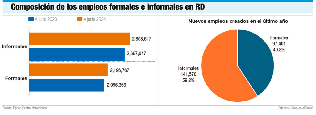 Durante esta semana, el Banco Central de la República Dominicana publicó un informe destacando que, en el último año, desde el segundo trimestre de 2023 hasta el mismo trimestre de 2024, se crearon 238,972 nuevos empleos. El informe, difundido a través de la mayoría de los periódicos del país, presenta varios datos sobre el mercado laboral, pero omite un aspecto crucial: la proporción de empleos formales versus informales.
