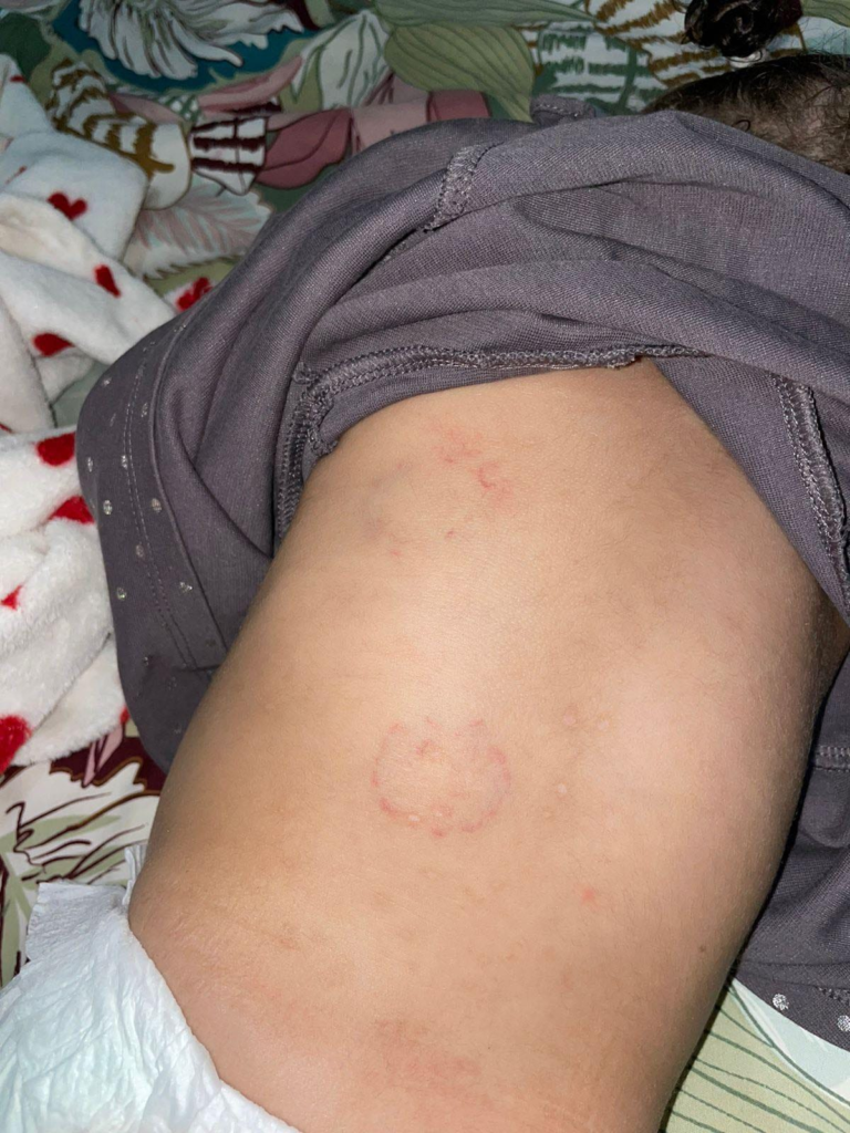 Según la madre muestra en un audiovisual, la pequeña aparenta tener mordeduras en su cuerpo, un brazo hinchado y otros tipos de erosiones en el cuerpo que aparentan ser moretones por golpes.