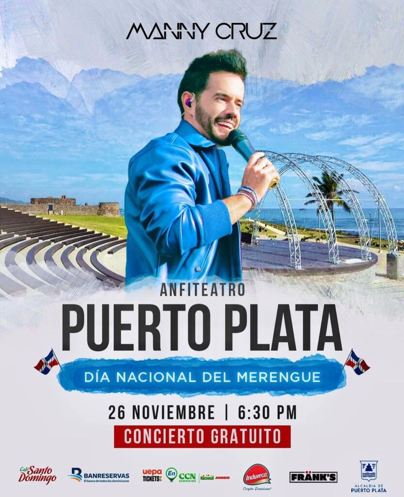 En el Anfiteatro de Puerto Plata, el próximo domingo 26 de noviembre, se llevará a cabo un concierto gratuito para celebrar el Día Nacional del Merengue, encabezado por el artista dominicano Manny Cruz con su espectáculo «Dominicano de Corazón».