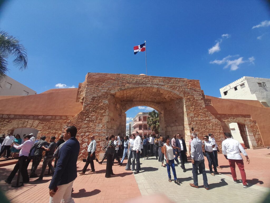 El ministro de Turismo, David Collado, en compañía de la Primera Dama, Raquel Arbaje, inauguró este lunes la completa restauración de la icónica Puerta de la Misericordia, ubicada en la Ciudad Colonial, con una inversión que supera los 17 millones de pesos.