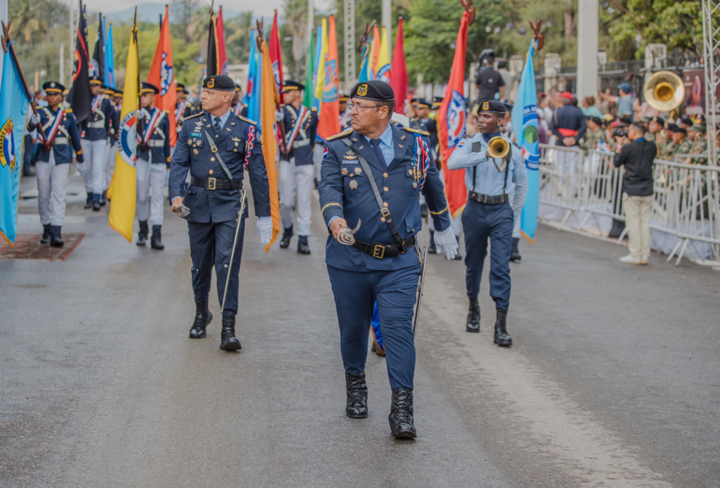 Seis brigadas desfilaron frente al Monumento a los Héroes de la Restauración, pertenecientes a la Fuerza Aérea, el Ejército, la Armada de la República y la Policía Nacional. Después de ellos continuaron decenas de representaciones de los centros educativos públicos y privados de esta Ciudad Corazón.