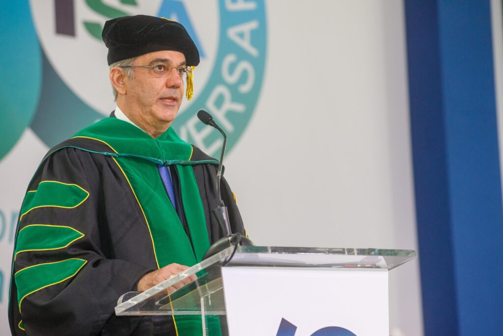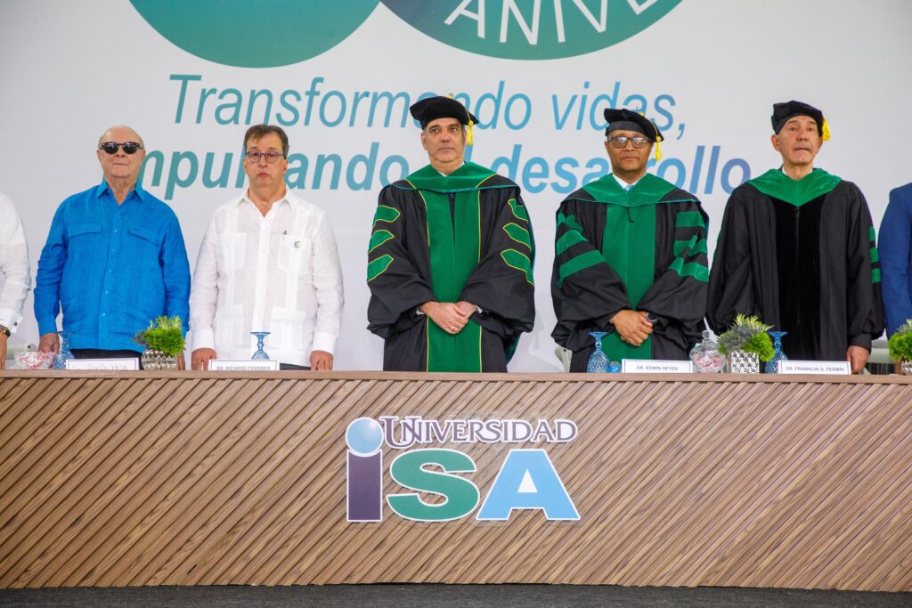 En tanto, el presidente del Consejo de Directores de la Universidad ISA, el Agrimensor, Ricardo Fondeur, afirmó que «El presidente Abinader personifica una trayectoria caracterizada por una vocación inquebrantable de servicio público, una visión estratégica de futuro y una pasión destacada por impulsar la transformación económica y social de nuestro país».