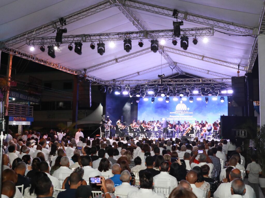 MAO, VALVERDE.- El presidente Luis Abinader cerró las actividades de las fiestas navideñas con un concierto a cargo de la Orquesta Filarmónica de Santo Domingo, en el municipio Mao, provincia Valverde.