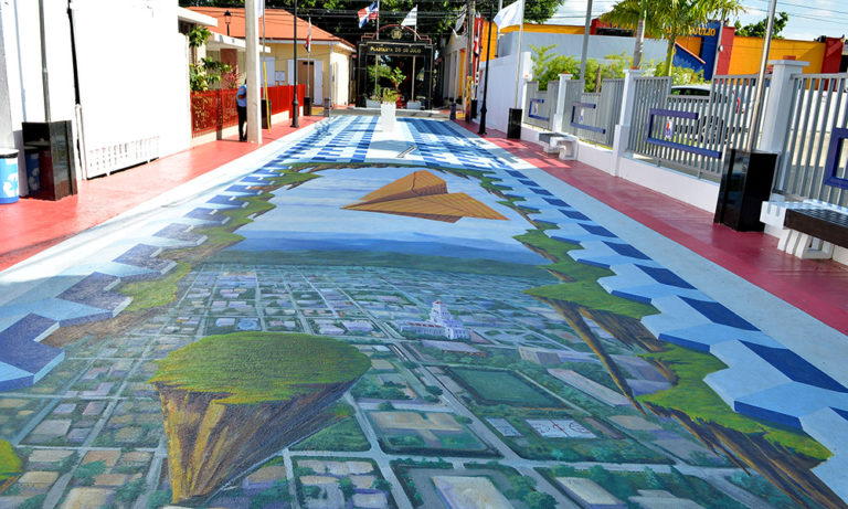 Cientos de personas de diferentes localidades del Cibao Central visitan esta ciudad para deleitarse con la calle 26 de Julio, que está pintada en forma tridimensional, la primera en su naturaleza de la República Dominicana.