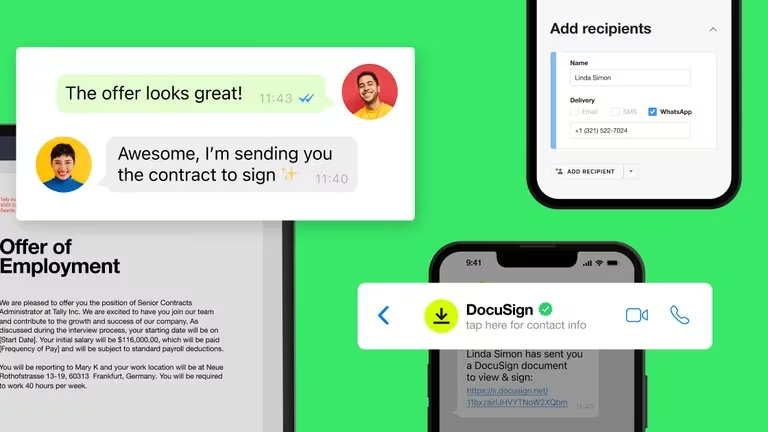 Esta nueva característica, bautizada como WhatsApp Delibery, será posible gracias a una alianza entre la app de mensajería de la suite Meta con a la plataforma de firma de documentos DocuSign.