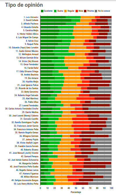 Según los datos del estudio, Sanz Lovatón ocupa la décima posición en el ranking general de los 50 líderes con mejor posicionamiento, destacándose entre funcionarios, legisladores y dirigentes políticos de diversas áreas. Su índice de valoración se sitúa en 50.2 puntos, evidenciando una percepción positiva por parte de la ciudadanía.